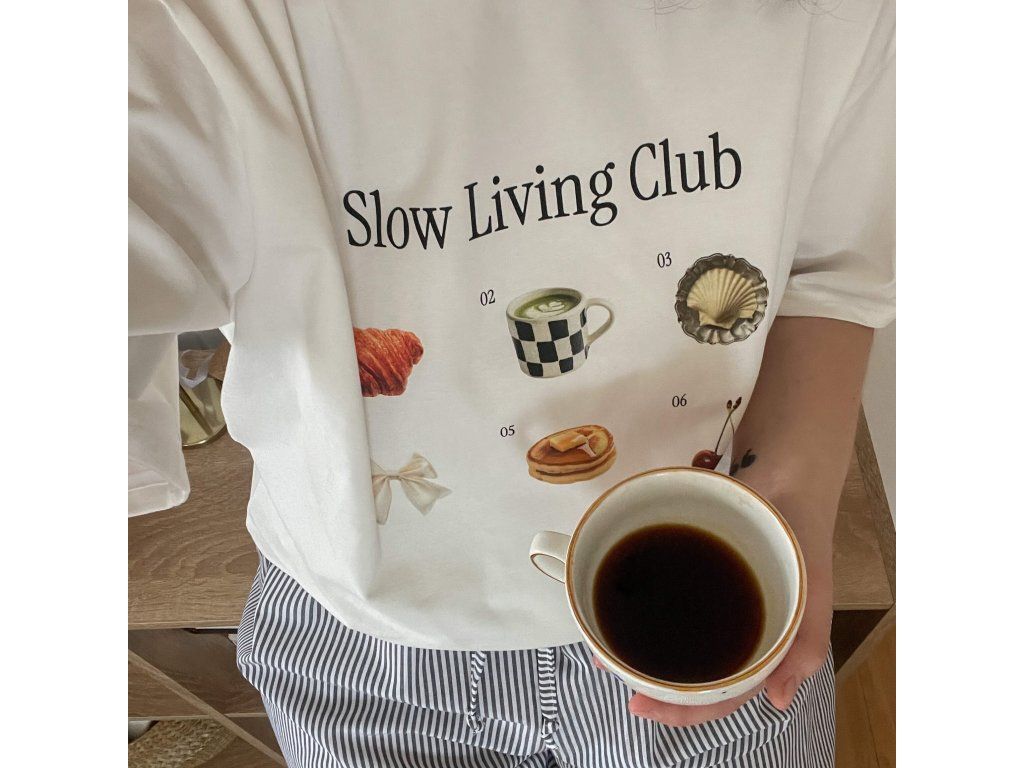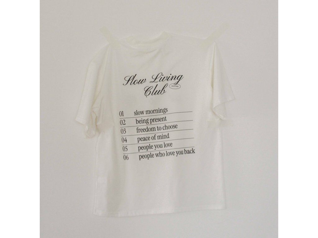 Tričko Slow Living Club — nechej čas plynout pomaleji. Vyber si kousek, který tě bude provázet každý den.